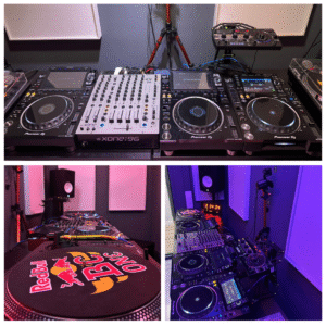 Practica y graba en dos cabinas pro, diseñadas e insonorizadas para que llegues al siguiente nivel, con Pioneer, Allen & Heath y Technics